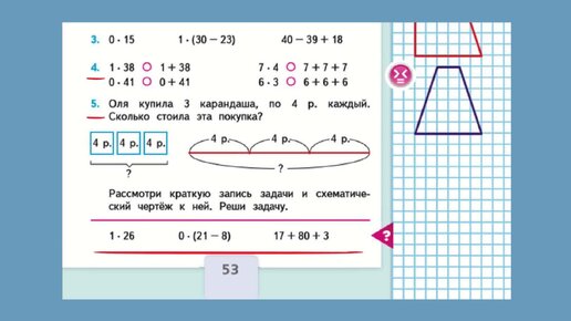 5+ Сделаем вместе! Математика 2 класс (Школа России) 2 часть, стр. 53, № 4, 5, под чертой.