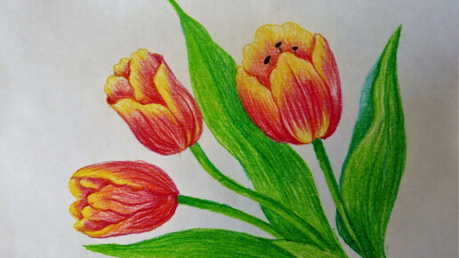 Как легко нарисовать тюльпаны карандашами к 8 марта