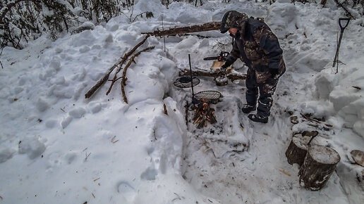 Застрял в сугробе! Стройку завалило! На костре как на плитке дома! Хижина в лесу.
