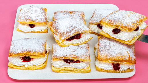 Они исчезнут через минуту! Идеальный кремовый десерт из слоеного теста