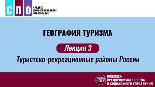 Лекция 3. ГТ. Туристско-рекреационные районы России