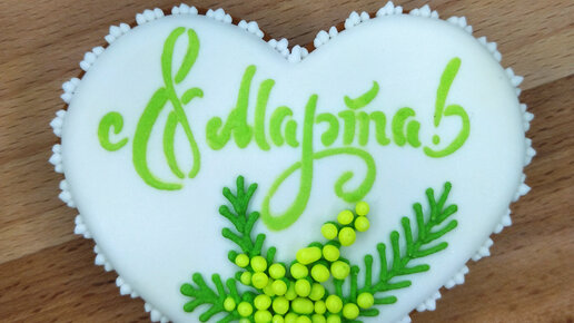 НЕЖНЫЙ ПРЯНИК С МИМОЗОЙ! Как сделать красиво надпись на прянике? Вариант украшения пряника к 8 марта.