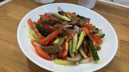 Салат с отварной говядиной. Необычный, яркий и сочный салат из привычных продуктов.