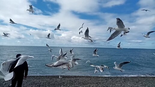 Адлер. Любимое развлечение отдыхающих у моря. Пляж "Дельфин" в Курортном Городке, конец февраля 2024 года.
