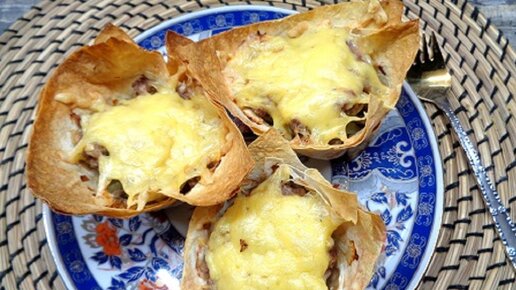 Лавашные конвертики с мясом и грибами.