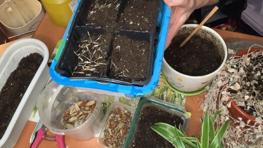 Сею бархатцы 25.02. Собрала семена из теплицы.