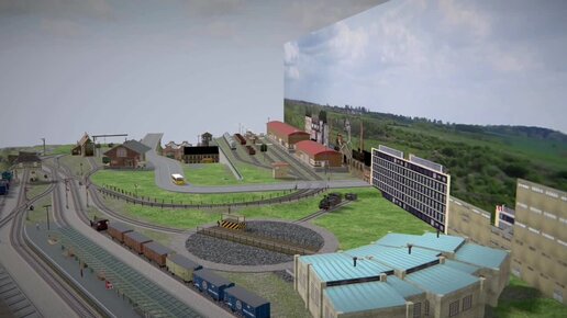 Анимационная модель жд макета под любой масштаб. Движение поезда вид из кабины. 3D моделирование макета железной дороги. (ч.5) (Векторный)