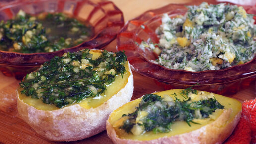 Картофель запечённый «как на костре» с постным и сливочным соусом.