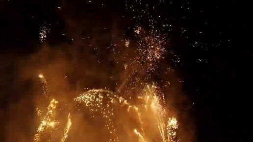 Беспилотник летит сквозь фейерверки