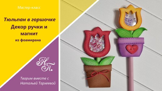МК "Тюльпан в горшочке. Декор ручки и магнит из фоамирана" Подарки своими руками