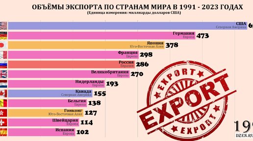 Крупнейшие страны-экспортёры в 1991- 2023 годах