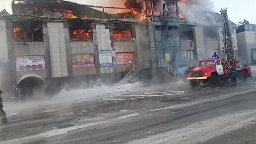 Пожар в Чунском/Сгорели магазин МАСТЕР(точно не знаю название) ,Т.Ц.ИМПЕРИЯ. .. 28.02.2024.Утро 9 .00....