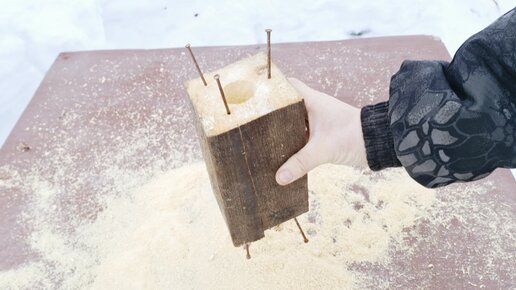 Взял деревянный брус с гвоздями, и сделал своими руками одноразовую печку для похода и рыбалки