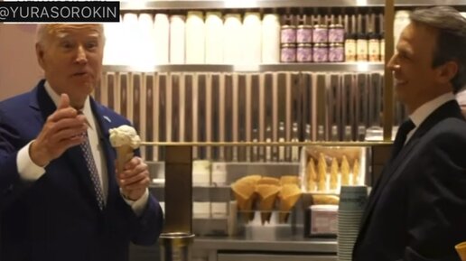 Байден пробует российское мороженое )