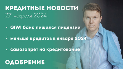 QIWI банк лишился лицензии, действие самозапрета на кредитование, меньше кредитов в январе этого года