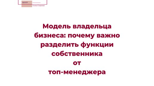 Модель владельца бизнеса: почему важно разделить функции собственника от топ-менеджера.