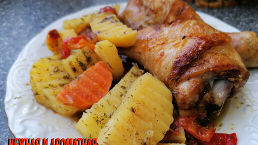 Очень вкусная и нежная куриная голень с овощами в духовке.Вкусное и сытное блюдо.