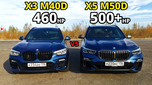 САМЫЙ БЫСТРЫЙ ДИЗЕЛЬ. BMW X3 M40D vs BMW X5 M50D ГОНКА. 2 ТУРБИНЫ или 4 ТУРБИНЫ?