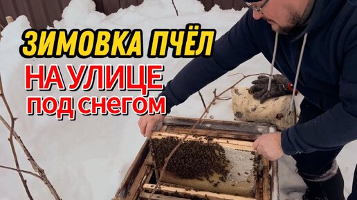 Зимовка пчёл на улице, под снегом. Слабая семья. Печатный расплод в конце февраля.