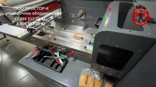 Упаковка сосисок в тесте на упаковочной линии PROSTOR. 90 штук в минуту.