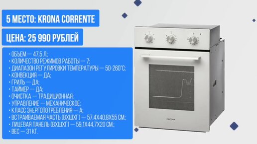 Топ-5 духовых шкафов по версии медиа My gadget: духовой шкаф KRONA CORRENTE на 5 месте