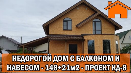 Kd.i Недорогой красивый дом с балконом и навесом для авто. 148м2 + 21м2 навес, Проект КД-8