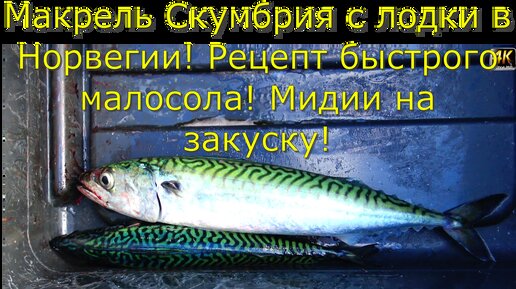Mакрель Скумбрия с лодки в Норвегии! Рецепт быстрого малосола! Mидии на закуску! 4K.