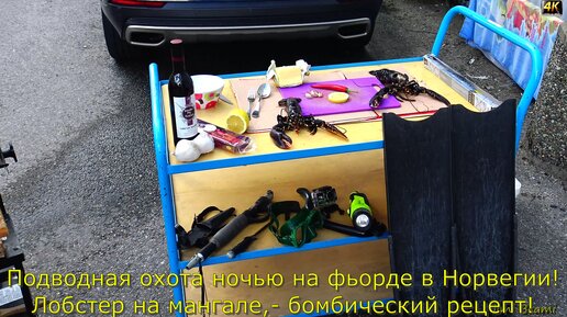Подводная охота ночью на фьорде в Норвегии! Лобстер на мангале,- бомбический рецепт! 4K.