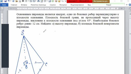 Задача о высоте пирамиды, площади боковой поверхности пирамиды