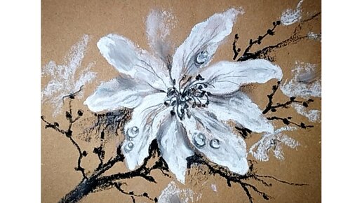 😊💮🍀Цветок после дождя. Рисунок белой и черной масляной пастелью на крафтовой бумаге.