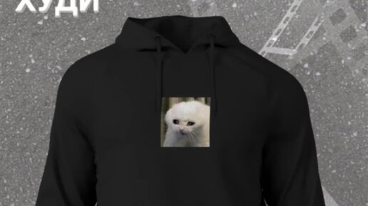 Худи кот плачет мем плачущий кот черное y2k с принтом котик