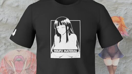 Черная футболка Waifu Material вайфу аниме тян хентай hentai