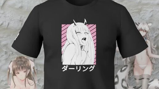 Черная футболка Zero Two милый во Франксе ахегао лицо хентай