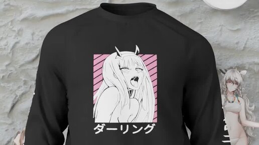 Свитшот черный Zero Two милый во Франксе ахегао лицо хентай