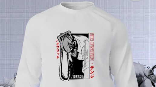 Свитшот белый аниме человек-бензопила Chainsaw man Denji