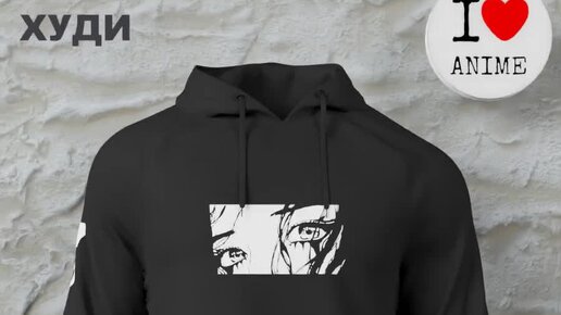 Худи оверсайз черное с принтом надписью аниме глаза тян