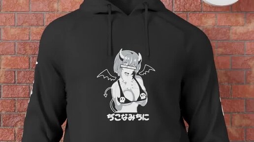 Кофта худи оверсайз черное с принтом аниме тян ахегао хентай
