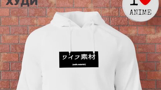 Худи оверсайз белое аниме принт с надписью Waifu material
