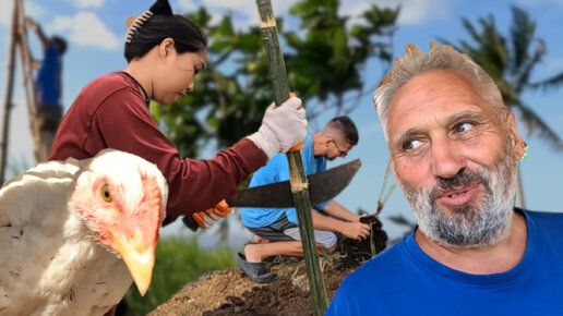 Нам провели электролинию | Едим экзотическое фрукты | Посадили шелковицу | Строим курятник | Отец и сын строят домик в деревне