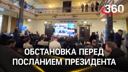 Журналисты собираются в Гостином дворе перед посланием Путина