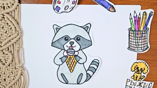 Как нарисовать енота с мороженым 🦝 / Поэтапный урок рисования для детей 6-9 лет