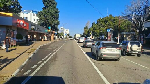 Сочи. Отличная погода в последний день зимы. 29 февраля ярко и солнечно. Едем по Курортному проспекту от Платановой аллеи до Бытхи