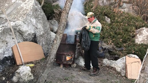 Последнее снятое видео в лагере 27.02.2024г. Сжигаю в бочке накопленный мусор