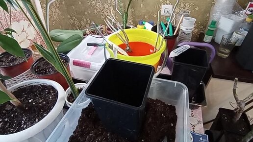 29 февраля. Посадка новых саженцев роз в горшочки.