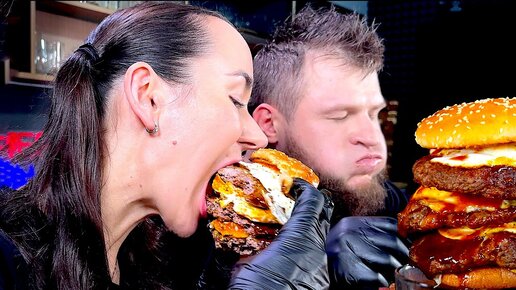 ВИДЕО С ЖЕНОЙ, ТРОЙНЫЕ БУРГЕРЫ С ГОВЯДИНОЙ И ЯЙЦОМ, ASMR MUKBANG, АСМР МУКБАНГ, 먹방, 大食い, たべる, 谢尔盖