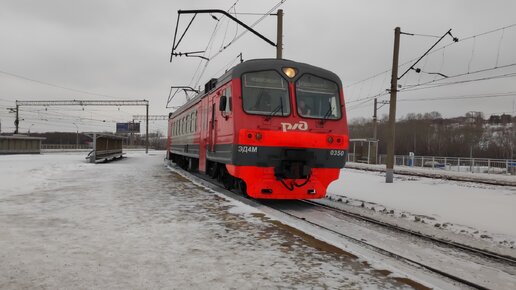 Служебный электропоезд ЭД4М-0350 останавливается на станции Разъезд Иня