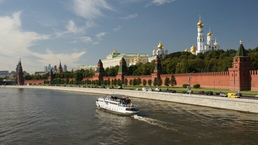 Вид на Московский Кремль со стороны Москва-реки. Я первый раз на такой прогулке и она меня завораживает