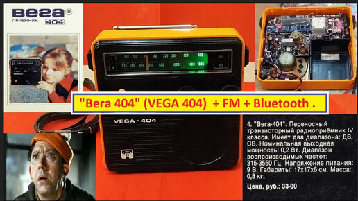 Радиоприёмник Вега 404 ( VEGA 404 ) + FM + Blutooth + Питание от Аккумуляторов + Система заряда .