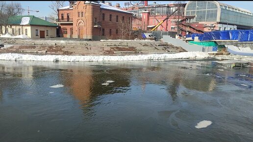Звук ледохода на Москве-реке, утка плывет на льдине, весна
