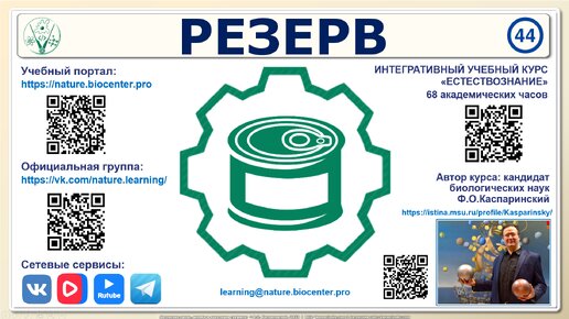 Резерв. Тема 44 интегративного курса “Естествознание” к.б.н. Феликса Каспаринского. Тематический модуль 6 “Сохранение”